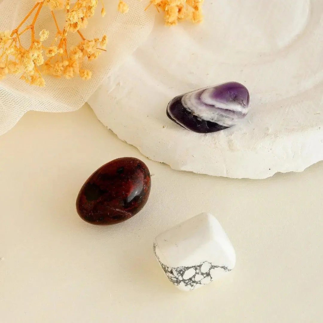 The Tumbled Stone Kit includes crystal tumbles and a leaflet explaining each crystal’s name and purpose, ensuring clarity on their benefits whether for personal use or as a thoughtful gift. Here’s how each crystal supports peaceful sleep: